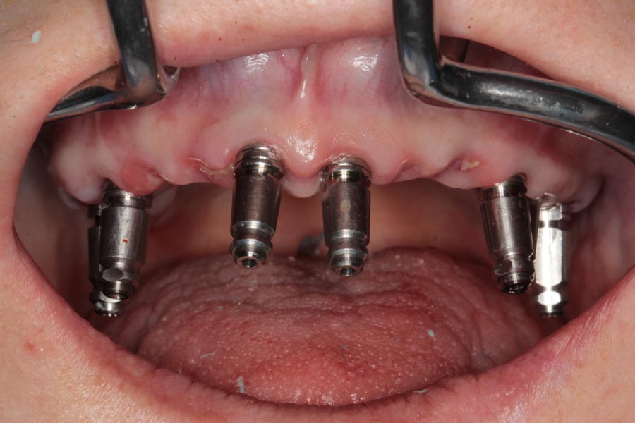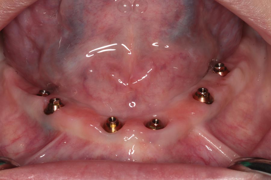 The patient travelled from another state for treatment so we only saw her again 3 months after surgery, when she was ready to start on the final prosthetic phase of treatment.
