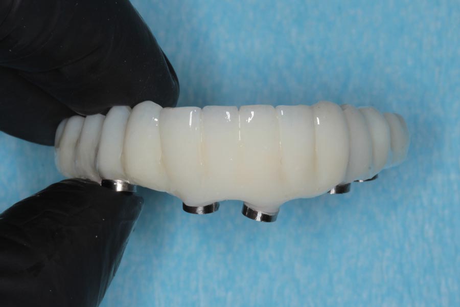 More importantly, special care is taken to ensure the tissue-fitting surfaces are smooth and convex. This ensures that any plaque that builds up here is easily removed with regular brushing and water-picking. Hygiene is important for long-term tissue health and this implant success.