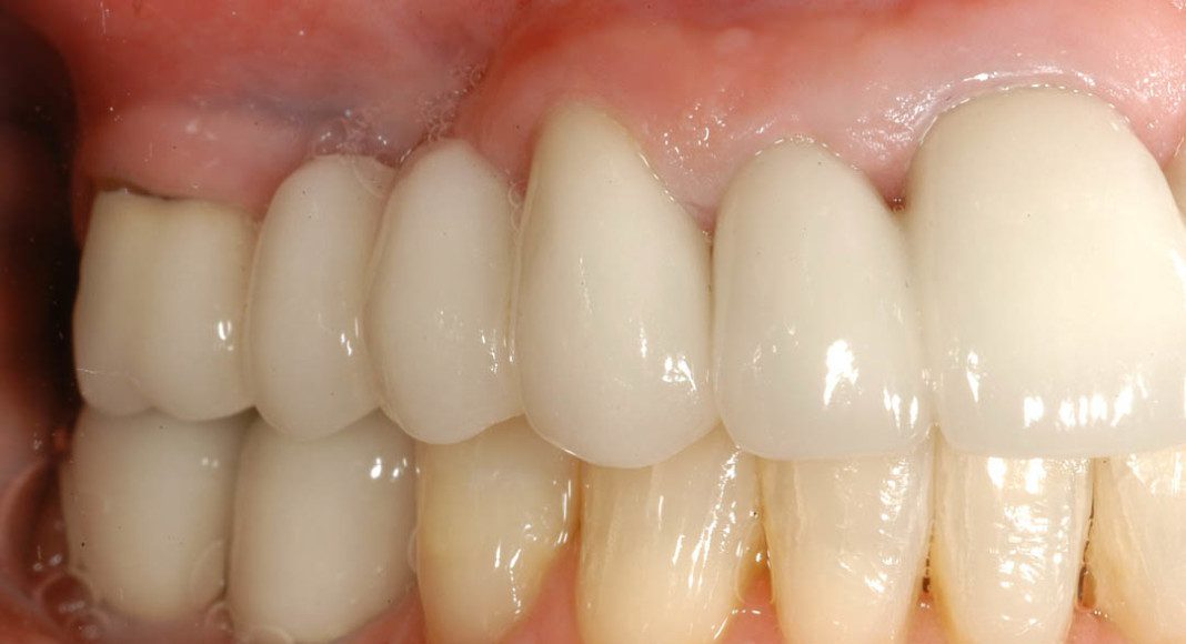 Final crowns, upper arch. (She didn’t need treatment on the upper left molar; it was still serving her well and didn’t have decay or problems. We figured, after 88 years, if it’s still strong and not posing any issues, leave it alone!)